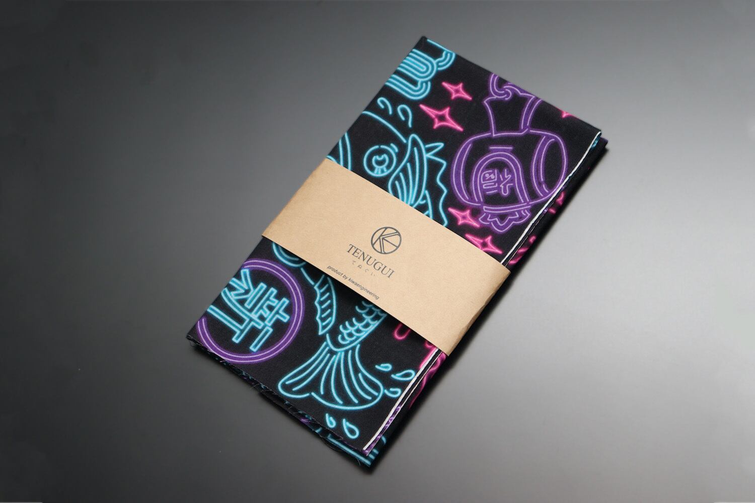 縁起物の絵柄を中心に賑やかな手ぬぐいです。